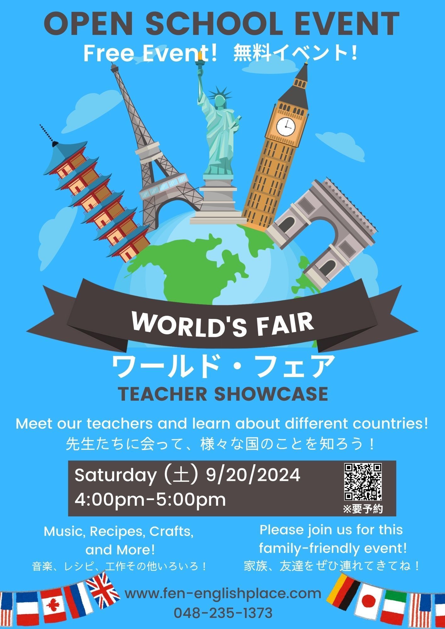 授業の体験イベント:FENの授業を体験していただくことができます。日程等は随時ホームページやチラシでお知らせしています。